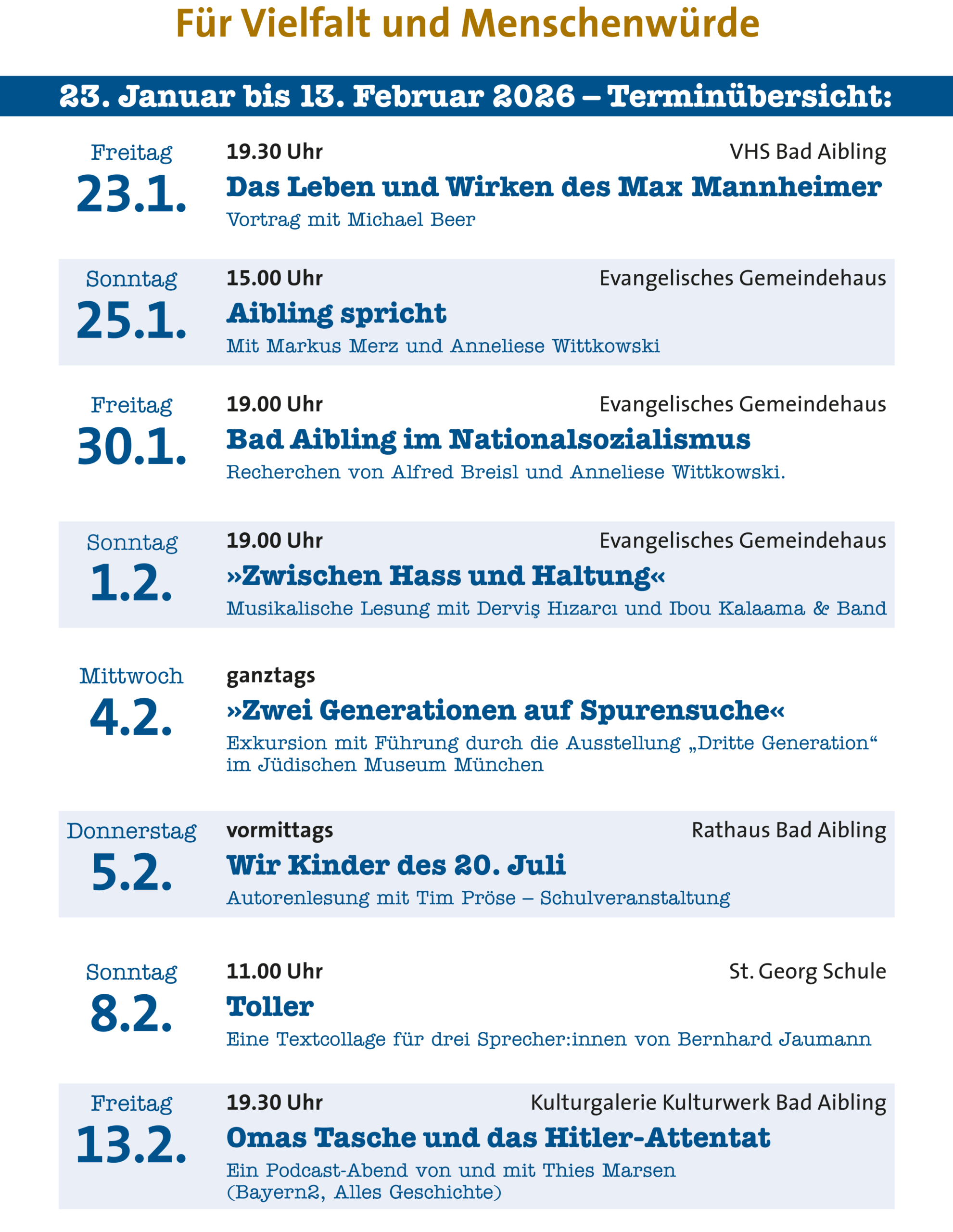 Neu: Die Veranstaltungsreihe Max-Mannheimer Kulturtage e.V. stellt einen wichtigen Baustein in der Erinnerungskultur und für unser gesellschaftliches Zusammenleben da.