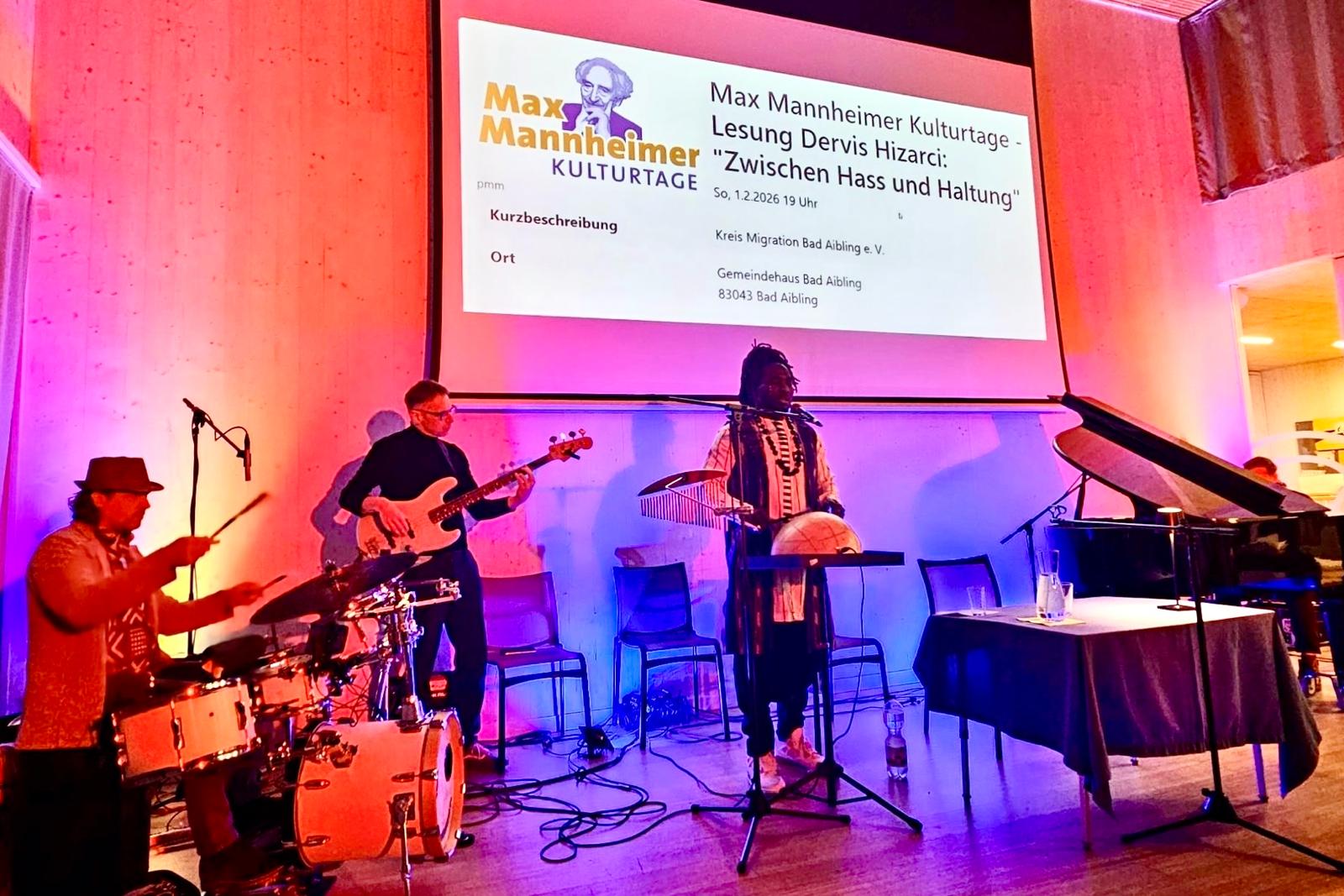 Begrüßt wurden die Gäste von Michael Beer vom Vorstand der Max Mannheimer Kulturtage e.V. sowie von Barbara Kleeblatt vom Kreis Migration Bad Aibling e.V. Die Musik von Ibou Kalaama & Band begleitete die Lesung über den gesamten Abend hinweg und schuf einen emotionalen Resonanzraum für die Texte und Gedanken.